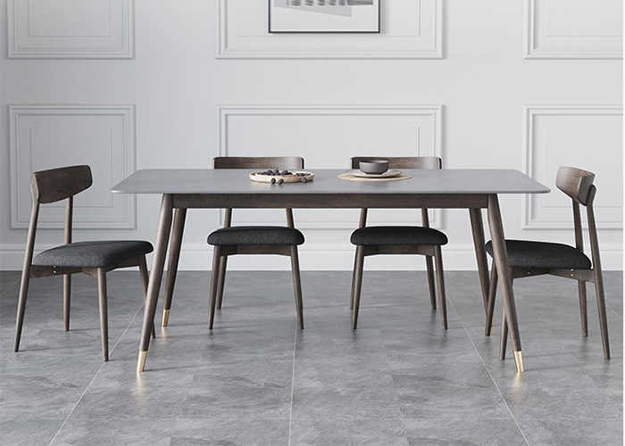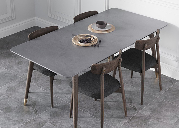 Restoran desain modern baru yang mewah, meja marmer bingkai stainless steel untuk makan